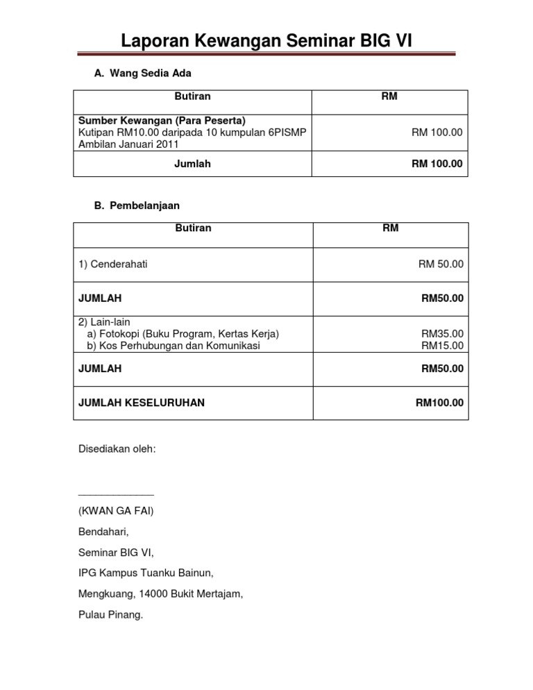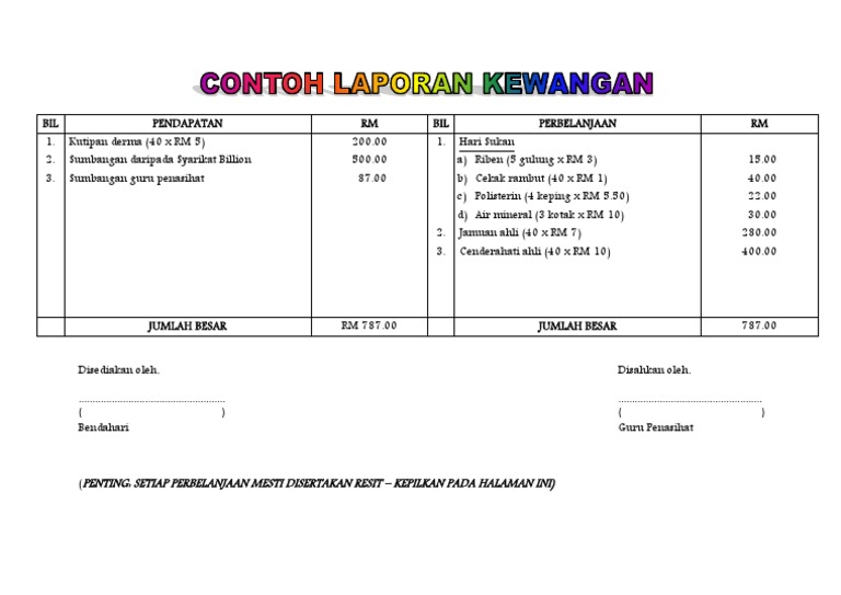 Saya sebagai seorang pelajar sekolah menengah membaca contoh laporan ini saya berasa amat kagum dengan hasil yang dibuat oleh cikgu. Laporan kewangan yang lengkap hendaklah dihantar tidak lewat daripada 1 bulan 30 hari selepas tamat program. KEPUTUSAN KEWANGAN Kumpulan Syarikat.